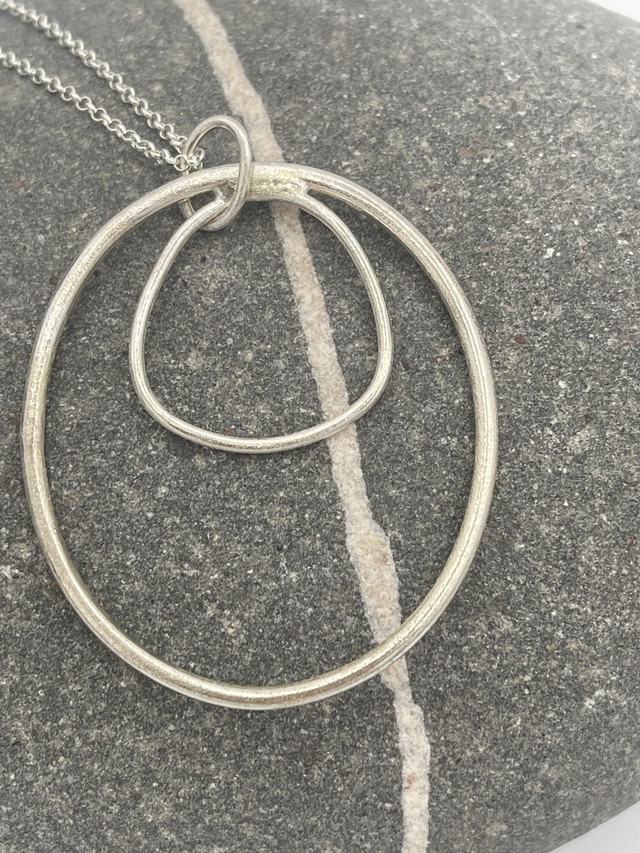 A stunning sterling silver triangle-circle within a circle pendant that is very tactile with an organic feel.