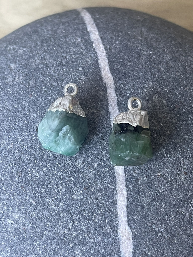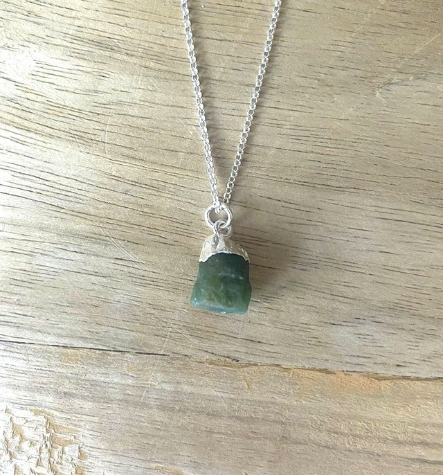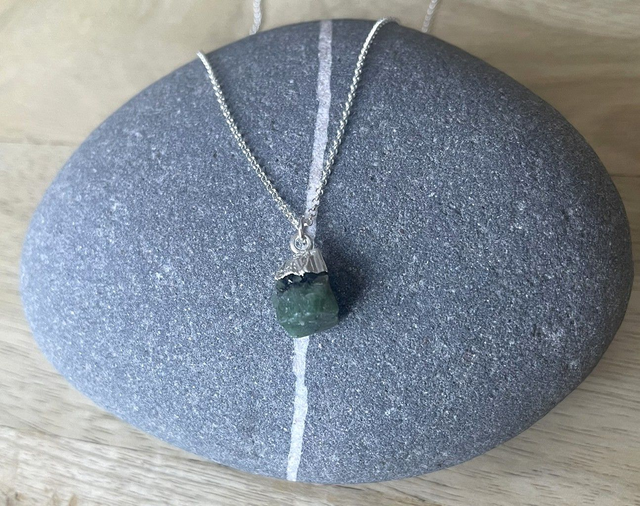May - Emerald birthstone necklace - raw & topped with sterling silver