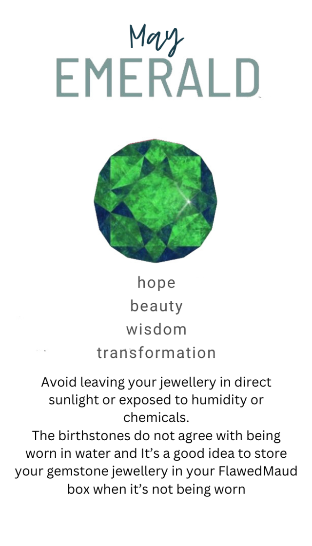 The stunning emerald, is said to bring hope, beauty, wisdom & transformation to it's wearer and will make a perfect & thoughtful gift, for someone born in May, as a gift for a 55th anniversary, or just get a piece because it speaks to you.