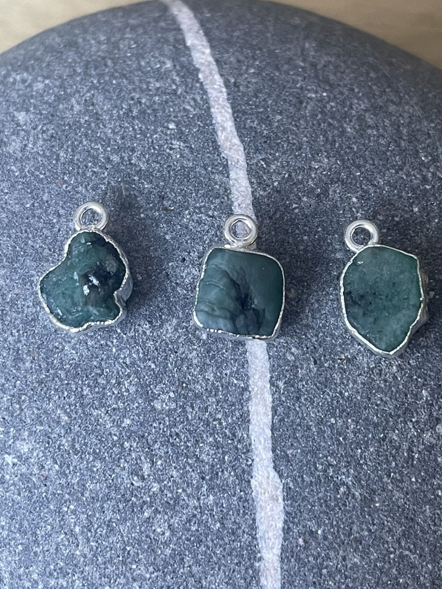 May - Emerald birthstone necklace - raw & wrapped with sterling silver